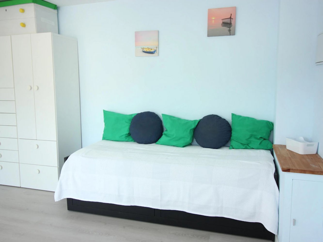 Das Wohnstudio befindet sich in der 5. Etage und bietet ein helles Wohn- und Esszimmer, ausgestattet mit Fernseher, Schlafcouch und Etagenbett. Es gibt eine moderne, voll ausgestattete Küche mit Waschmaschine sowie ein modernes Badezimmer. Vom Wohn-/Essbereich gelangen Sie direkt auf den Balkon, der Ihnen einen herrlichen Blick über den Ferienort, die Berge und das Meer bietet. Parkplätze sind rund um das Haus verfügbar.