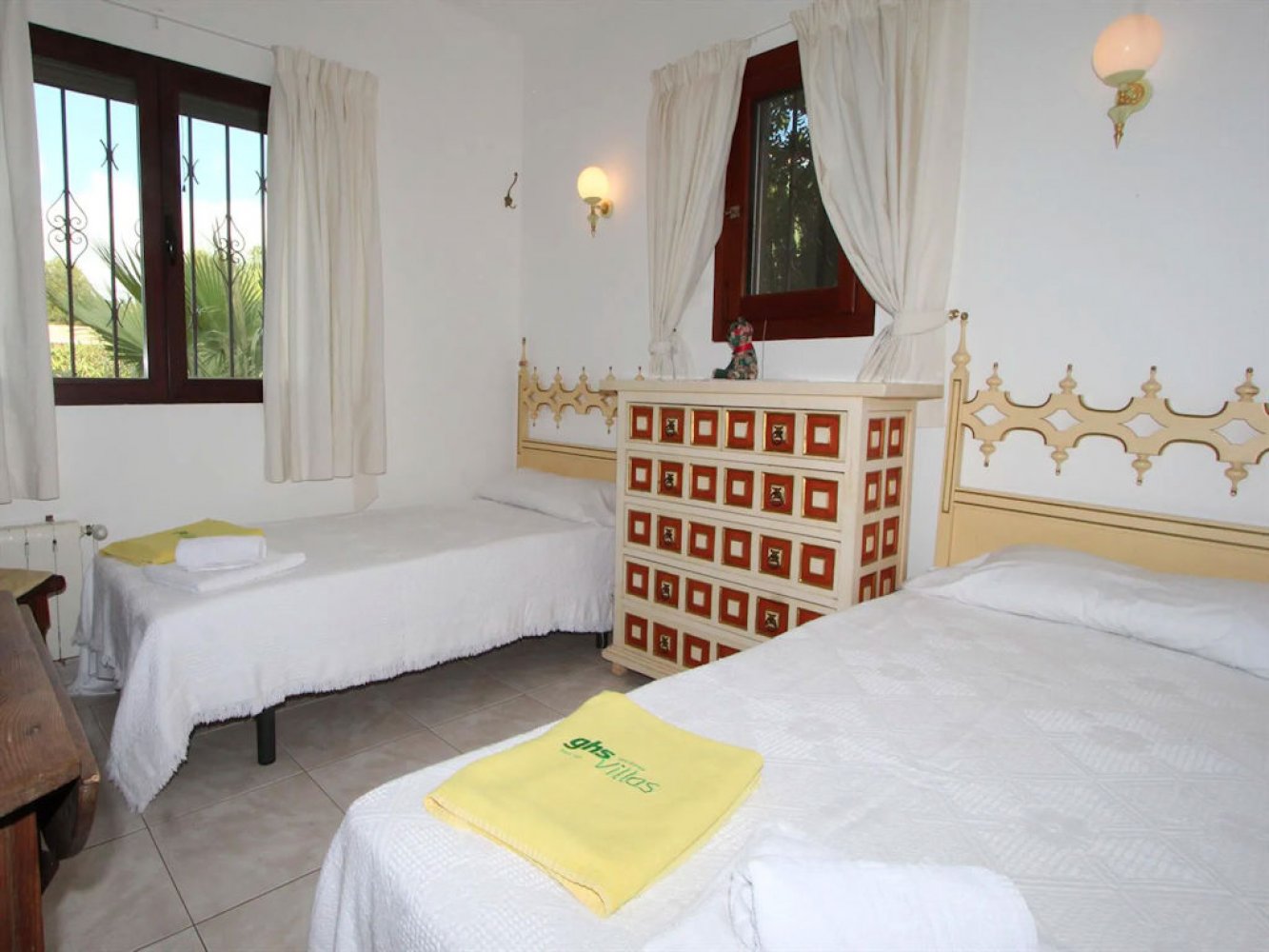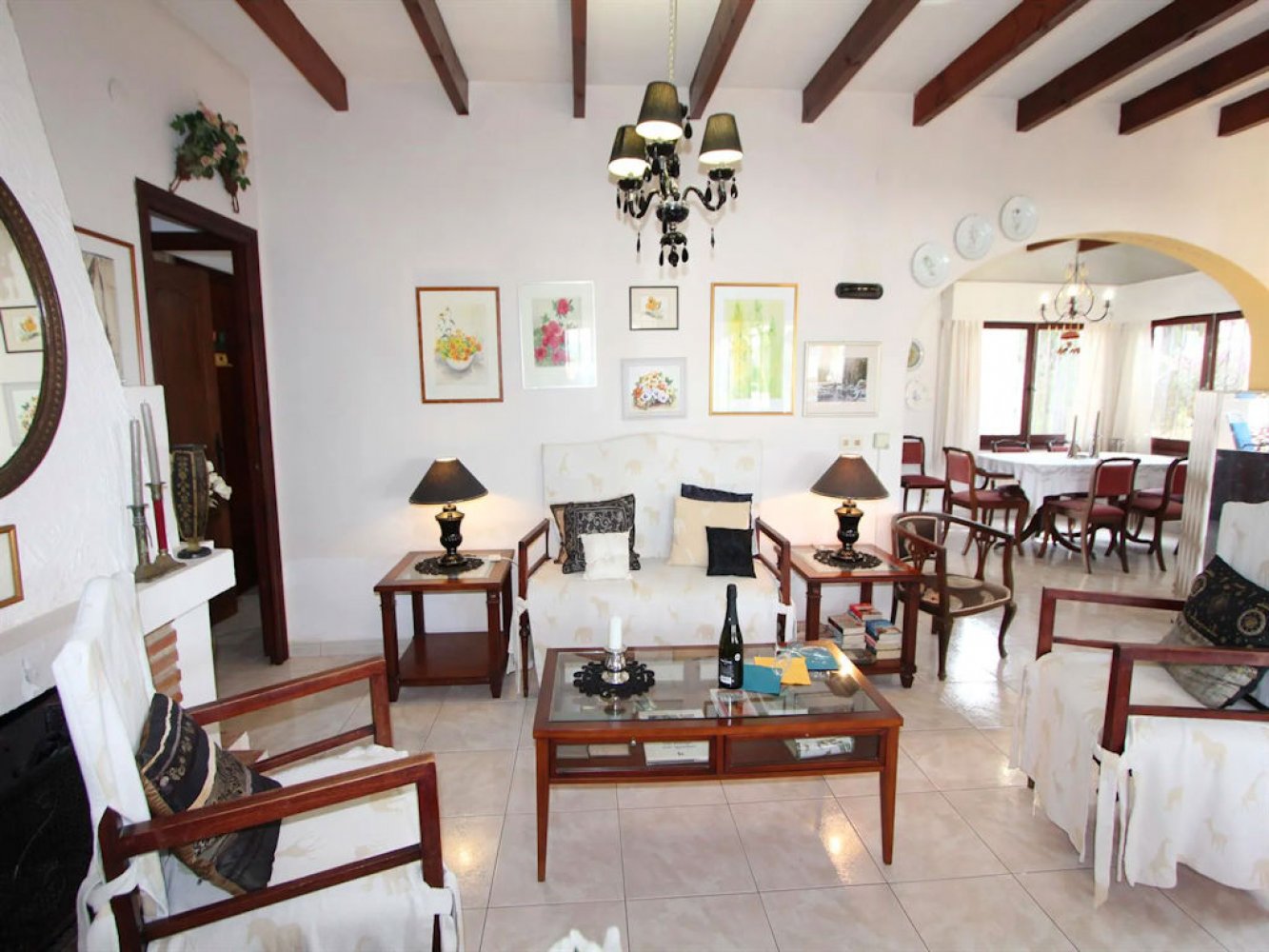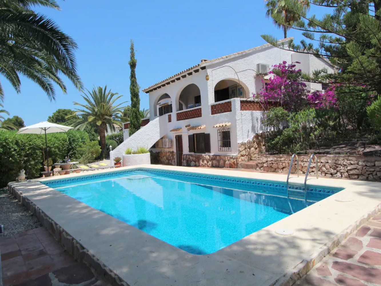 Mediterrane Ferienvilla mit privatem Swimmingpool in Moraira an der Costa Blanca. Das Anwesen liegt nur 500 m vom Sandstrand Playa de l'Ampolla des Ferienortes entfernt.