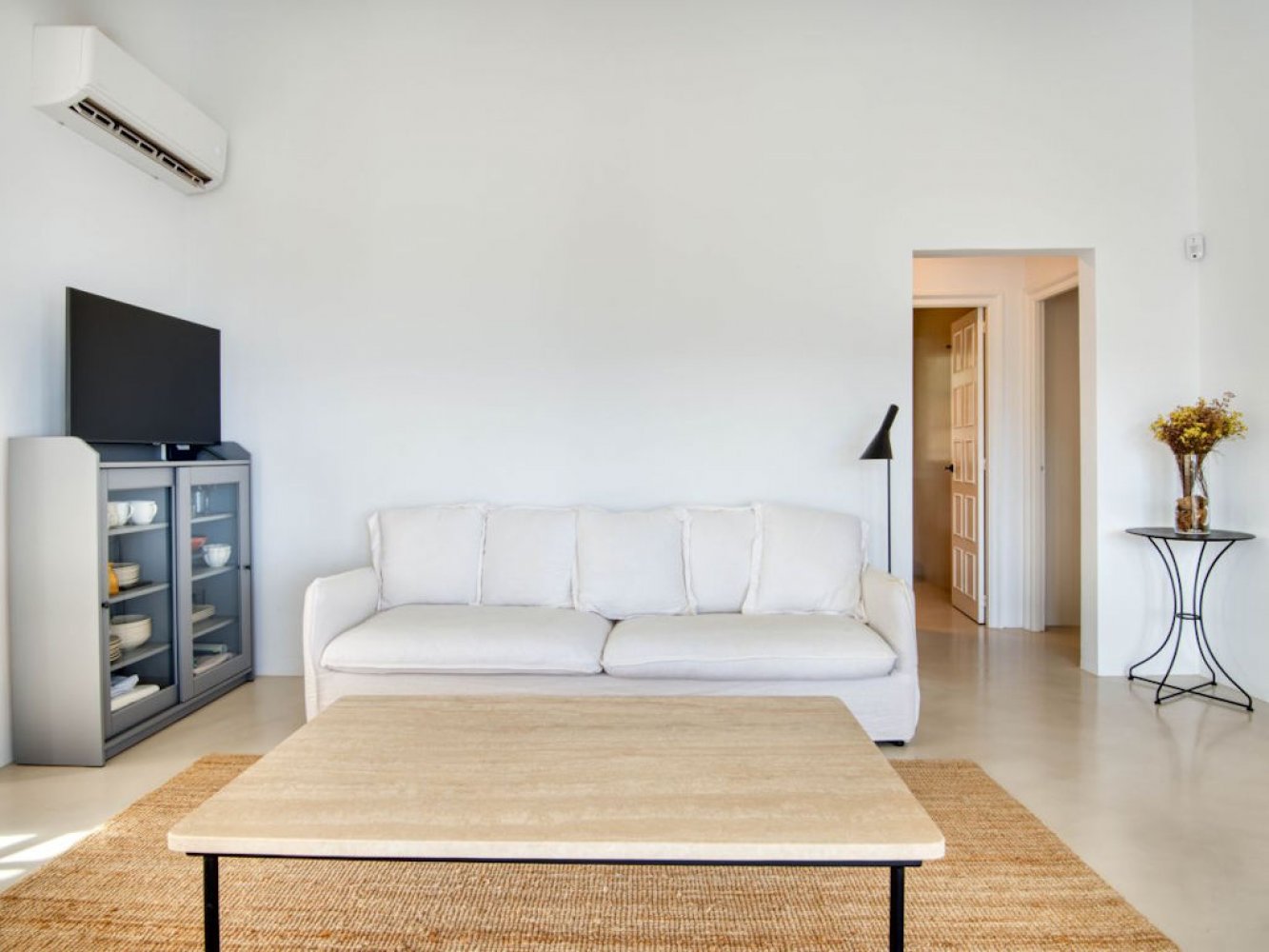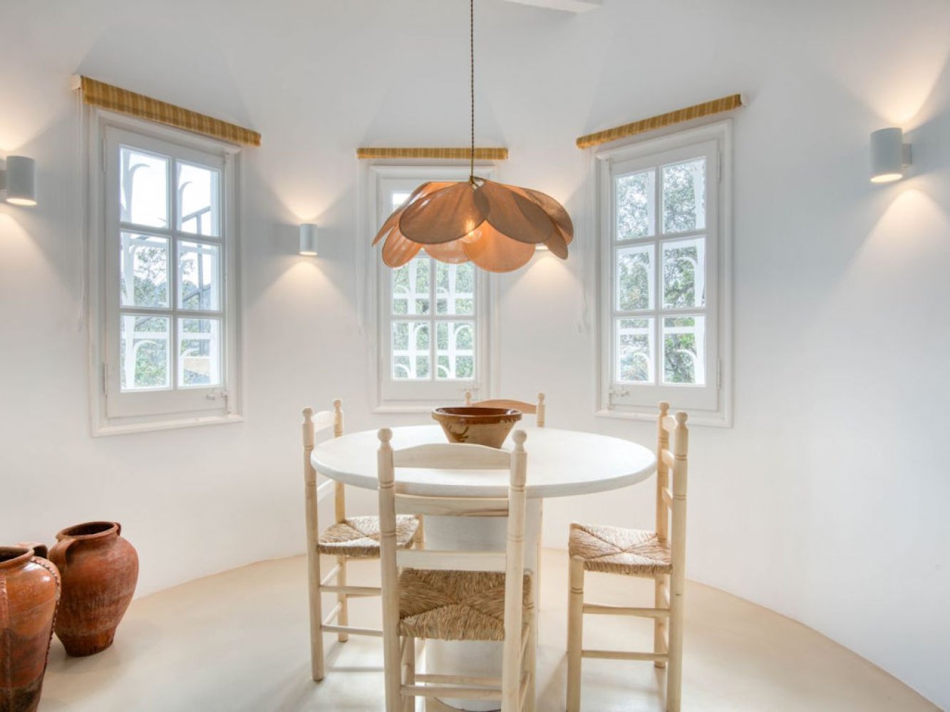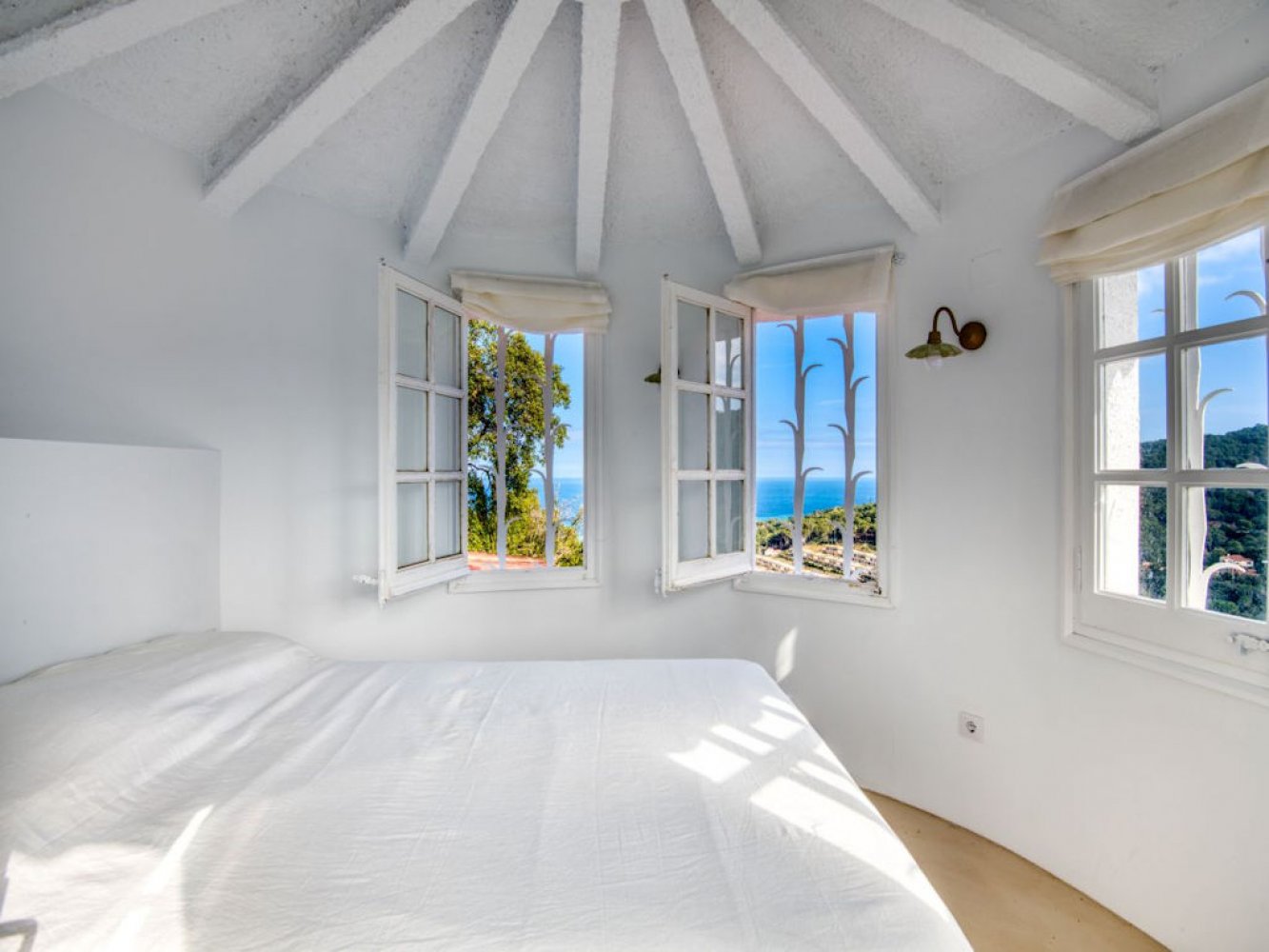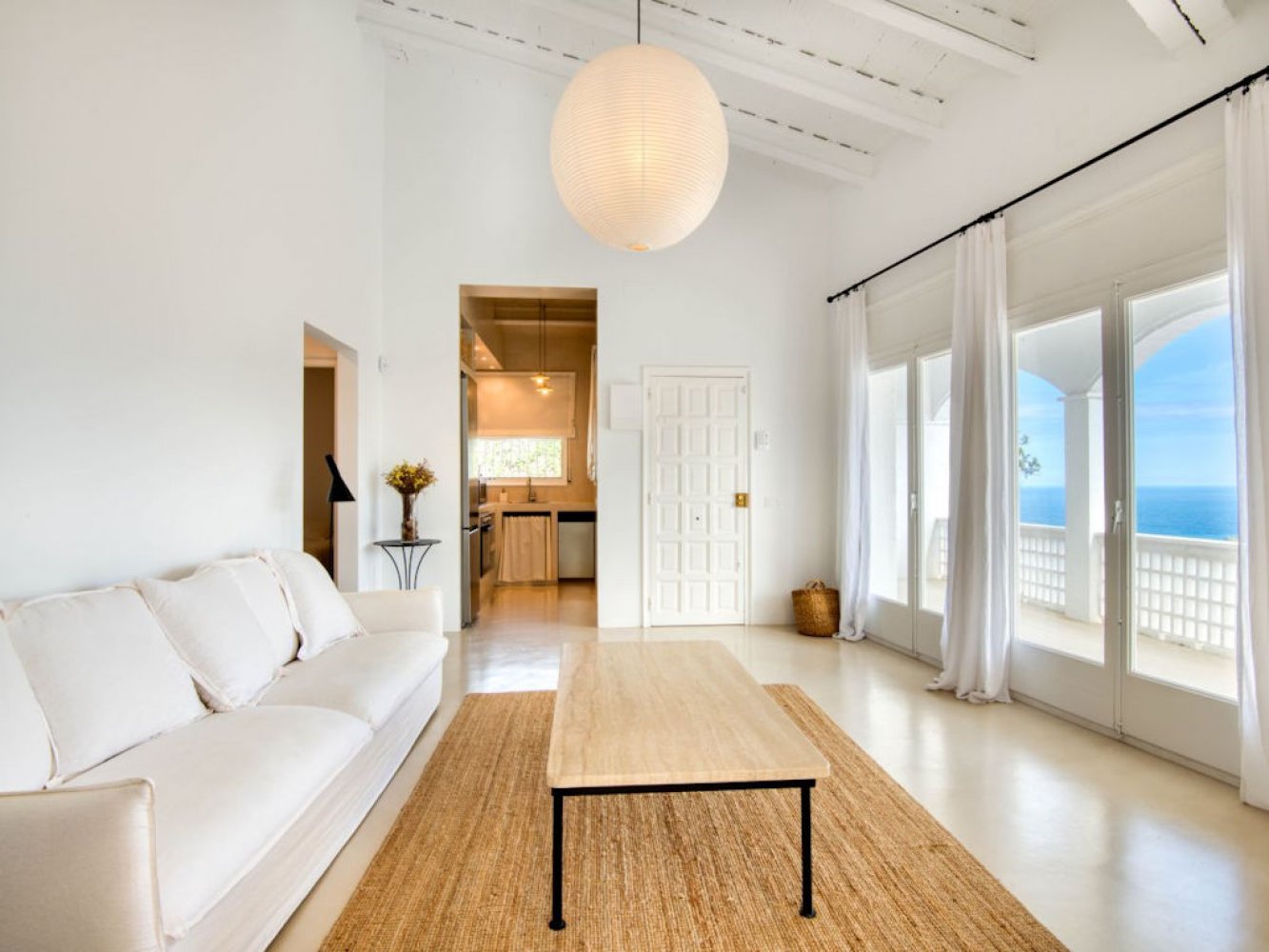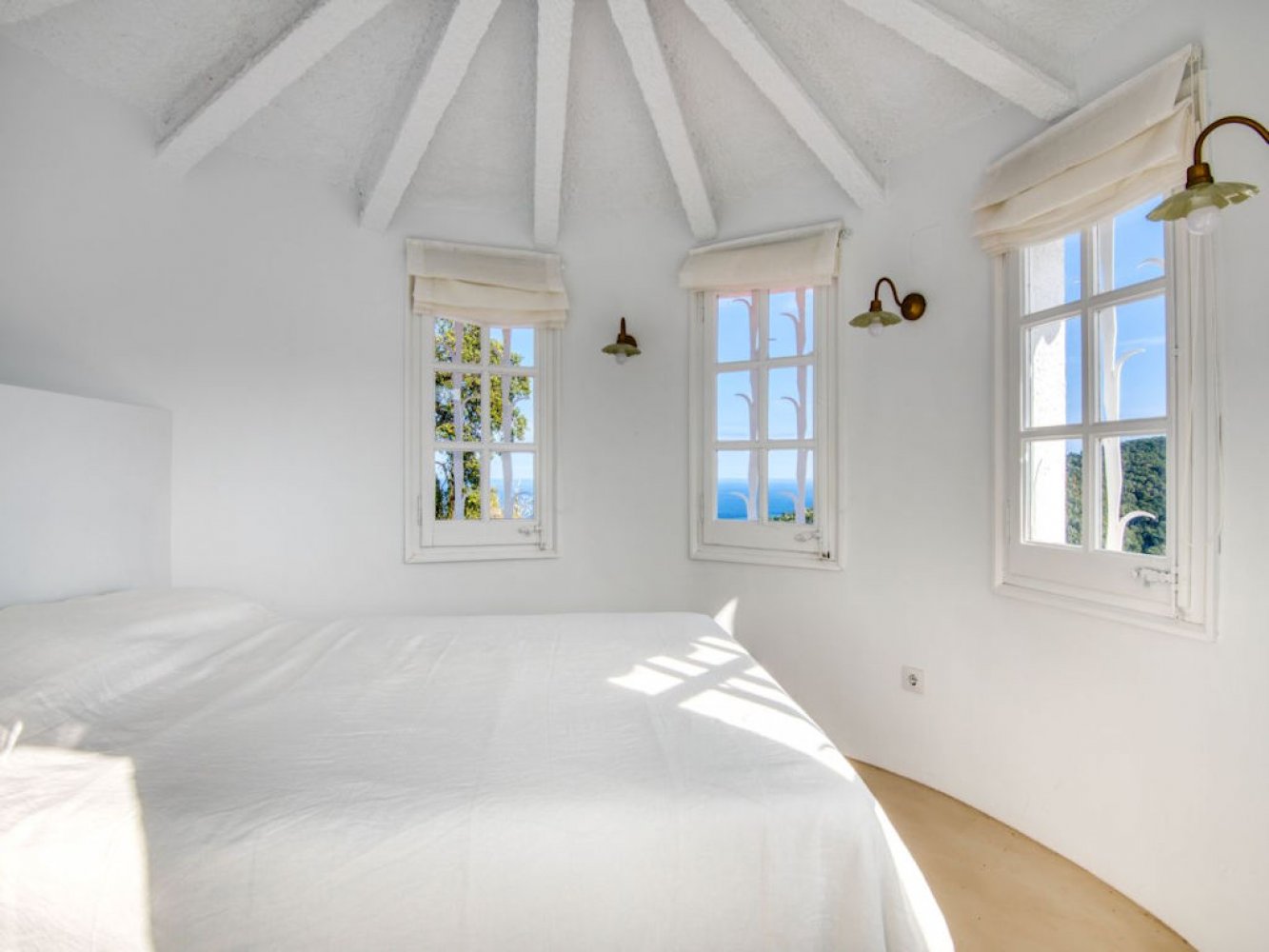 Die Villa verfügt über einen lichtdurchfluteten Wohn- und Essbereich mit Kamin und TV, eine moderne, voll ausgestattete Küche, zwei Doppelschlafzimmer und ein modernes Badezimmer. Von hier aus gelangt man auf eine weitläufige, teilweise überdachte Terrasse, die einen fantastischen Blick auf das Meer bietet. Im Turm, der vom restlichen Haus unabhängig ist, befindet sich ein drittes Schlafzimmer mit spektakulärem Meerblick.