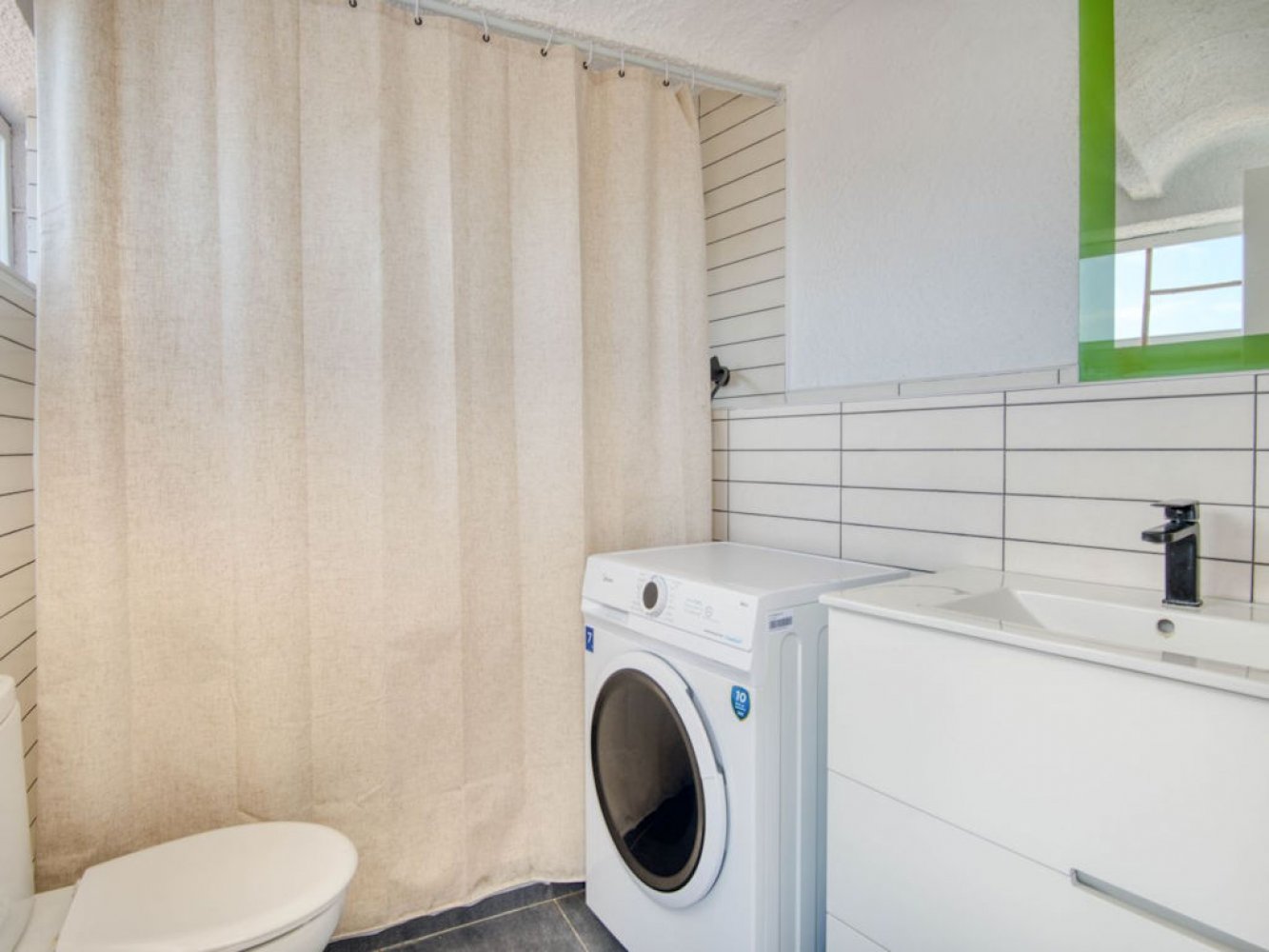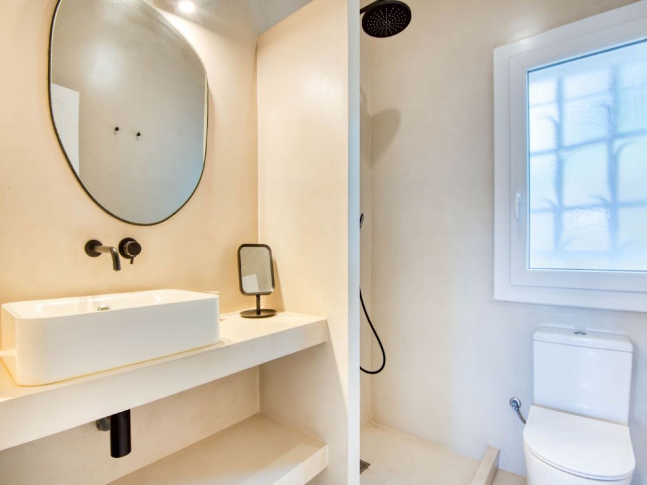 Im unteren Bereich des Hauses, auf Poolebene, gibt es ein weiteres modernes Badezimmer. Das teilweise abgeschlossene Grundstück verfügt über eine großzügige Sonnenterrasse mit großem privaten Swimmingpool und beeindruckendem Blick auf das Mittelmeer. Parkplätze stehen direkt vor dem Anwesen zur Verfügung. Der Zugang zum Haus erfolgt über eine Treppe von der Straße aus. Der Wohn- und Essbereich ist klimatisiert.