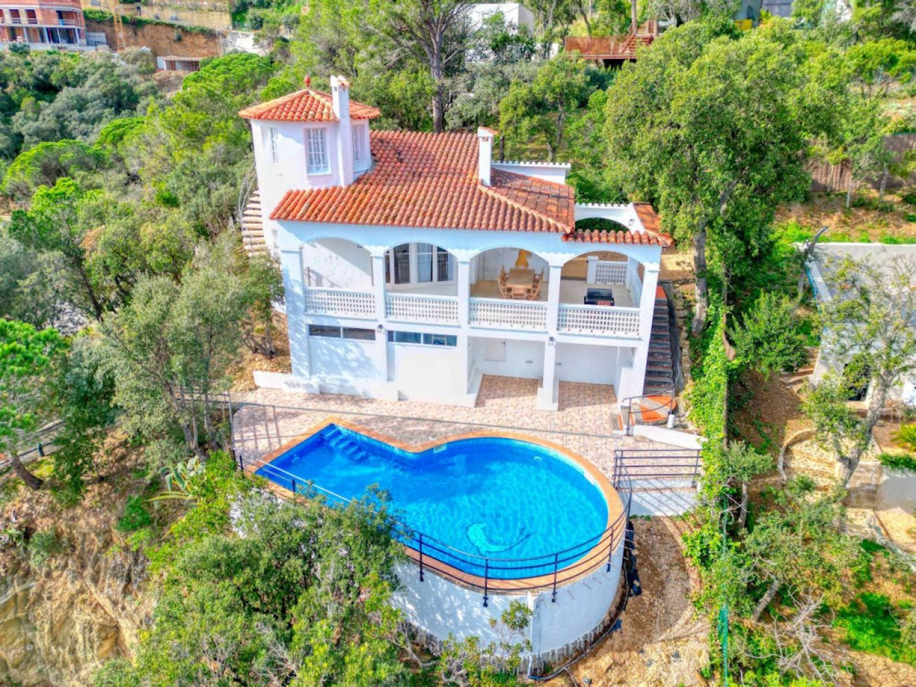Mediterranes Ferienhaus mit privatem Pool in der Urbanisation Sa Riera bei Begur, in der Region Playa de Pals. Das Anwesen bietet eine großzügige Sonnenterrasse und einen atemberaubenden Panoramablick auf das Mittelmeer.