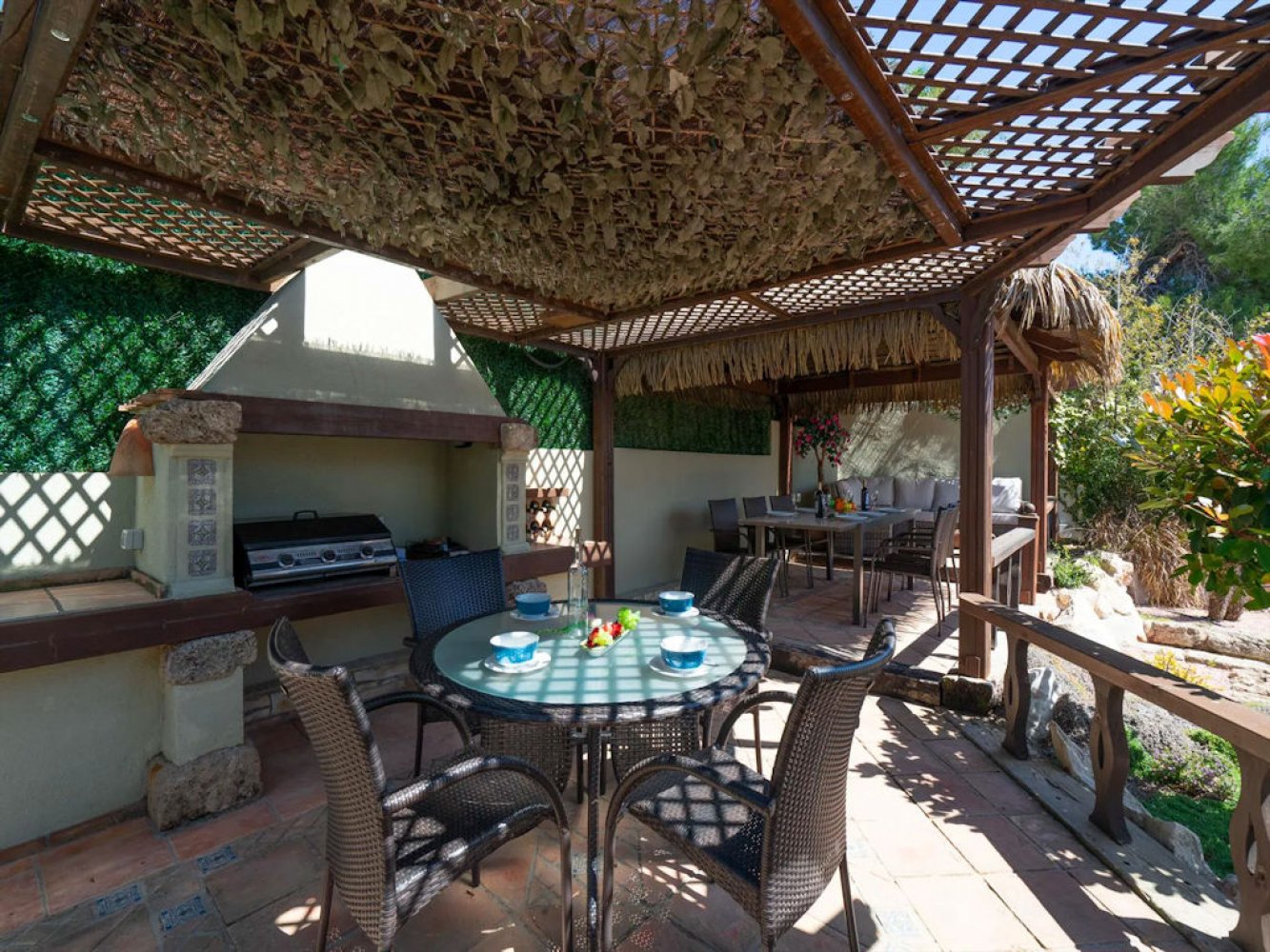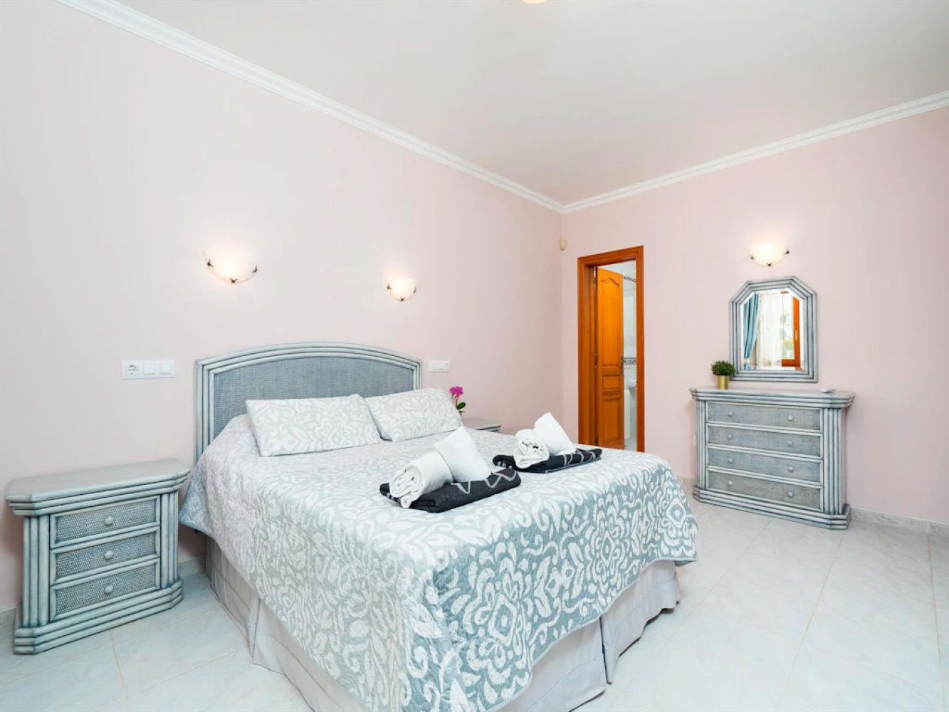 Die Ferienvilla verfügt über ein lichtdurchflutetes Wohn- und Esszimmer mit Kamin und Sat-TV, eine moderne, komplett ausgestattete Küche mit Geschirrspüler sowie eine Waschküche mit Waschmaschine. Es gibt drei Doppelschlafzimmer und zwei moderne Bäder. Über den aufklappbaren Wintergarten haben Sie Zugang zur großen Poolterrasse. Das vollständig abgeschlossene Anwesen umfasst ein Grillhaus mit Grill, eine große Sonnenterrasse mit Außendusche sowie den großzügigen privaten Swimmingpool. Drei Parkplätze stehen auf dem Grundstück zur Verfügung, davon sind zwei überdacht. (Alle Schlafzimmer sind klimatisiert.)