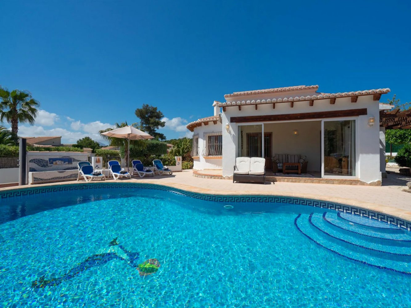 Exklusive Ferienvilla an der Costa Blanca mit privatem Pool. Das Anwesen liegt bei Jávea und bietet einen atemberaubenden Panoramablick auf die mediterrane Landschaft.