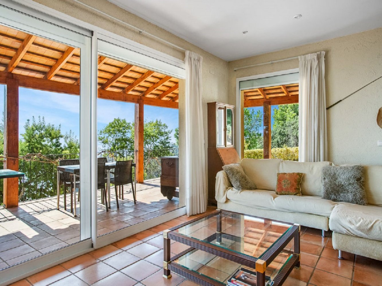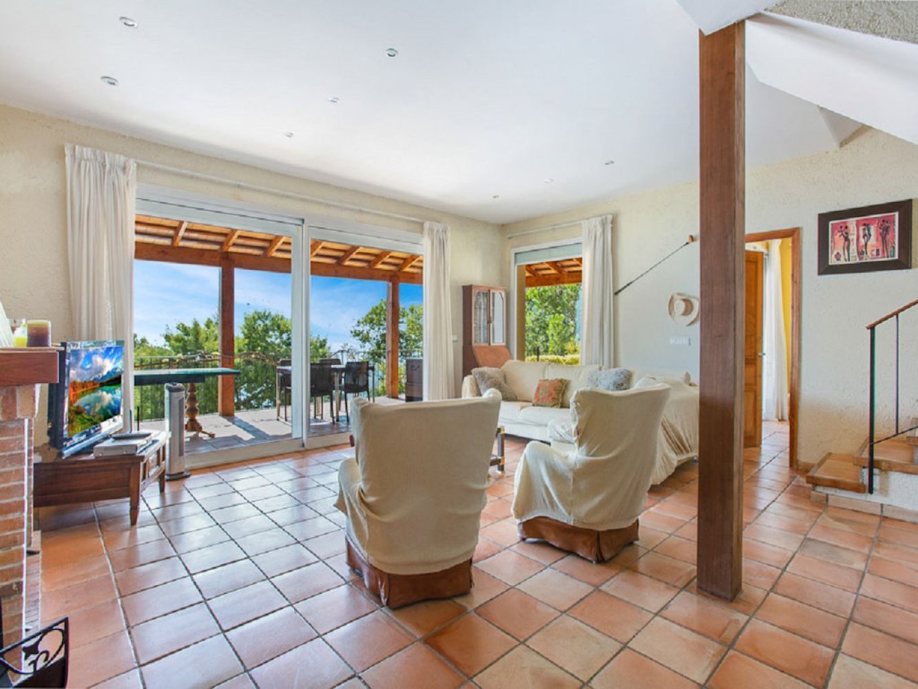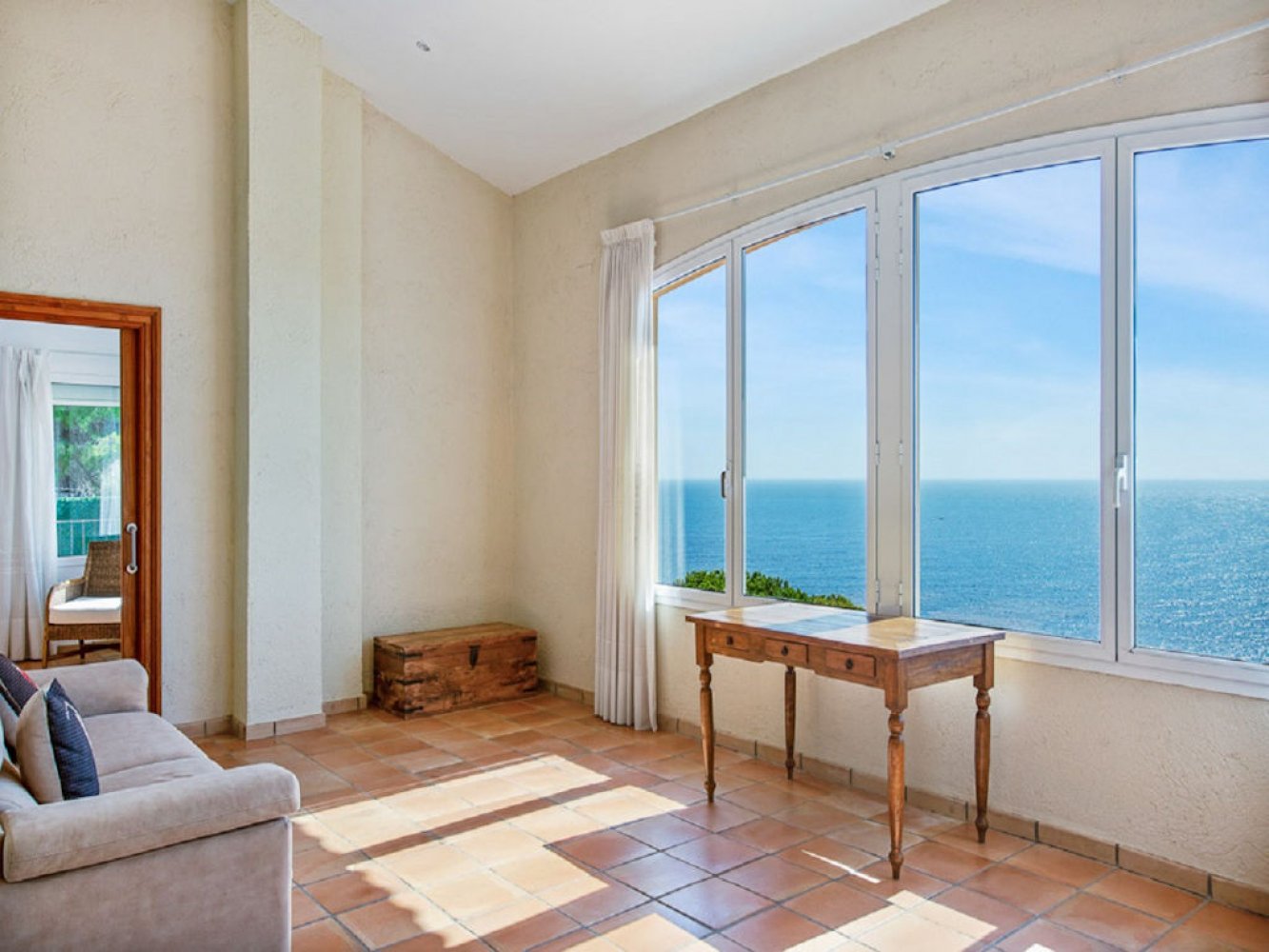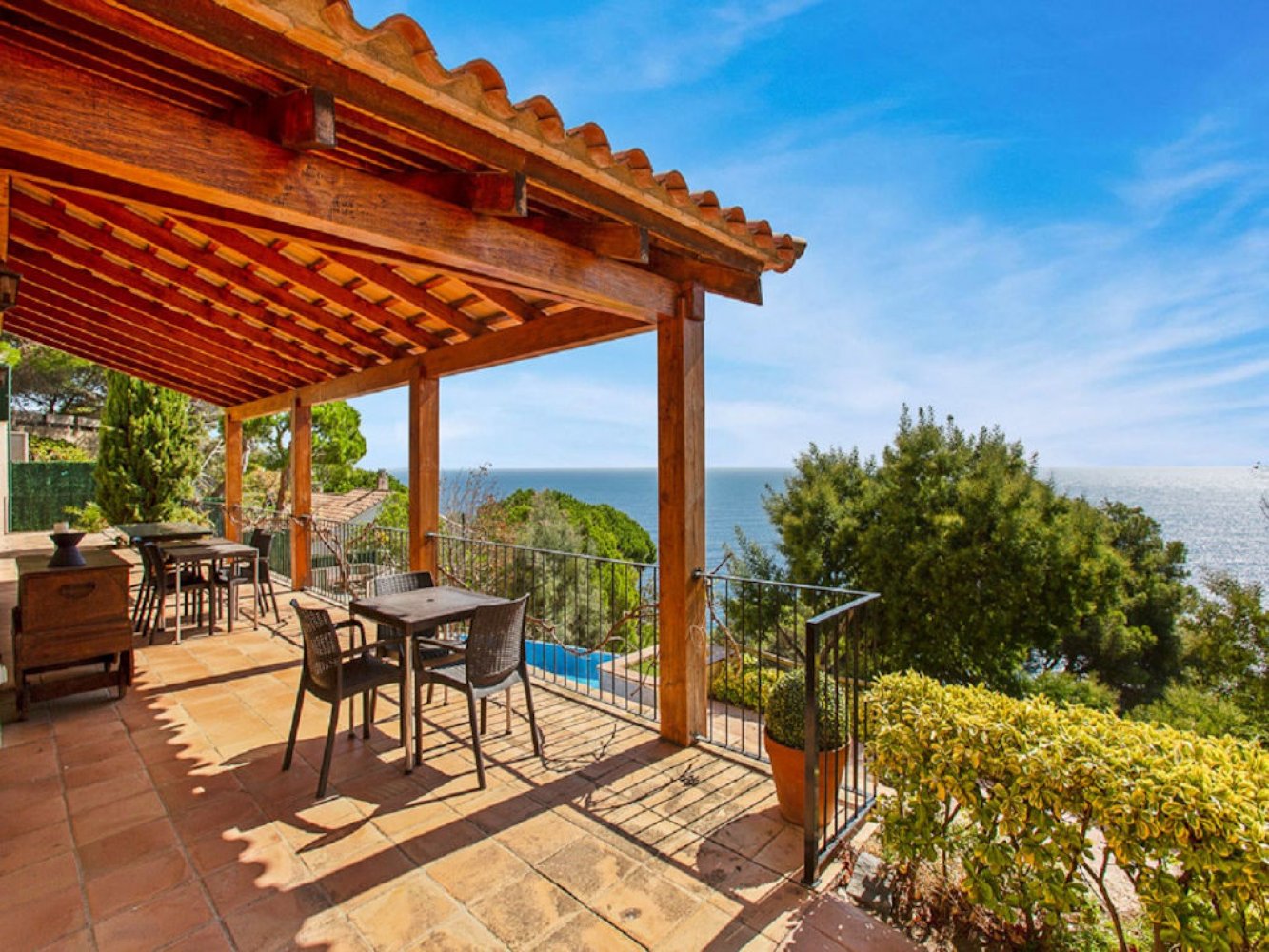 Das Ferienhaus verfügt über mehrere Terrassen mit atemberaubendem Panoramablick auf die Costa Brava und das Mittelmeer. Die mediterrane Villa bietet ein lichtdurchflutetes Wohn- und Esszimmer mit Kamin und Fernseher, eine voll ausgestattete Küche mit Geschirrspülmaschine und Waschmaschine, drei Doppelschlafzimmer sowie drei moderne Badezimmer. Das Haus verfügt zudem über mehrere wunderschöne Terrassen mit fantastischem Panoramablick auf das Meer. Auf dem vollständig abgeschlossenen Grundstück erwarten Sie ein einladender Chill-out-Bereich mit gemauertem Grill, eine großzügige Sonnenterrasse und ein großes privates Schwimmbad. Ein abgeschlossener Parkplatz steht ebenfalls zur Verfügung.