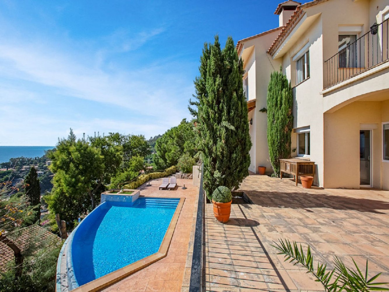 Exklusives, modernes mediterranes Anwesen mit privatem Schwimmbad bei Blanes an der Costa Brava. Die Villa liegt in der prestigeträchtigen Urbanisation „Cala Sant Francesc“, unweit des malerischen botanischen Gartens Marimurtra.