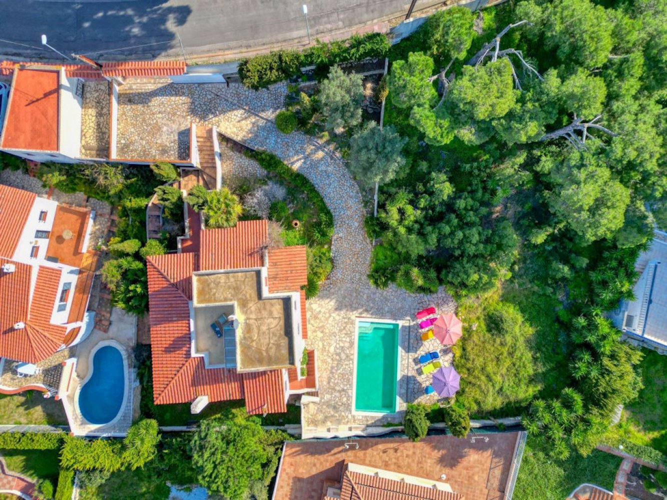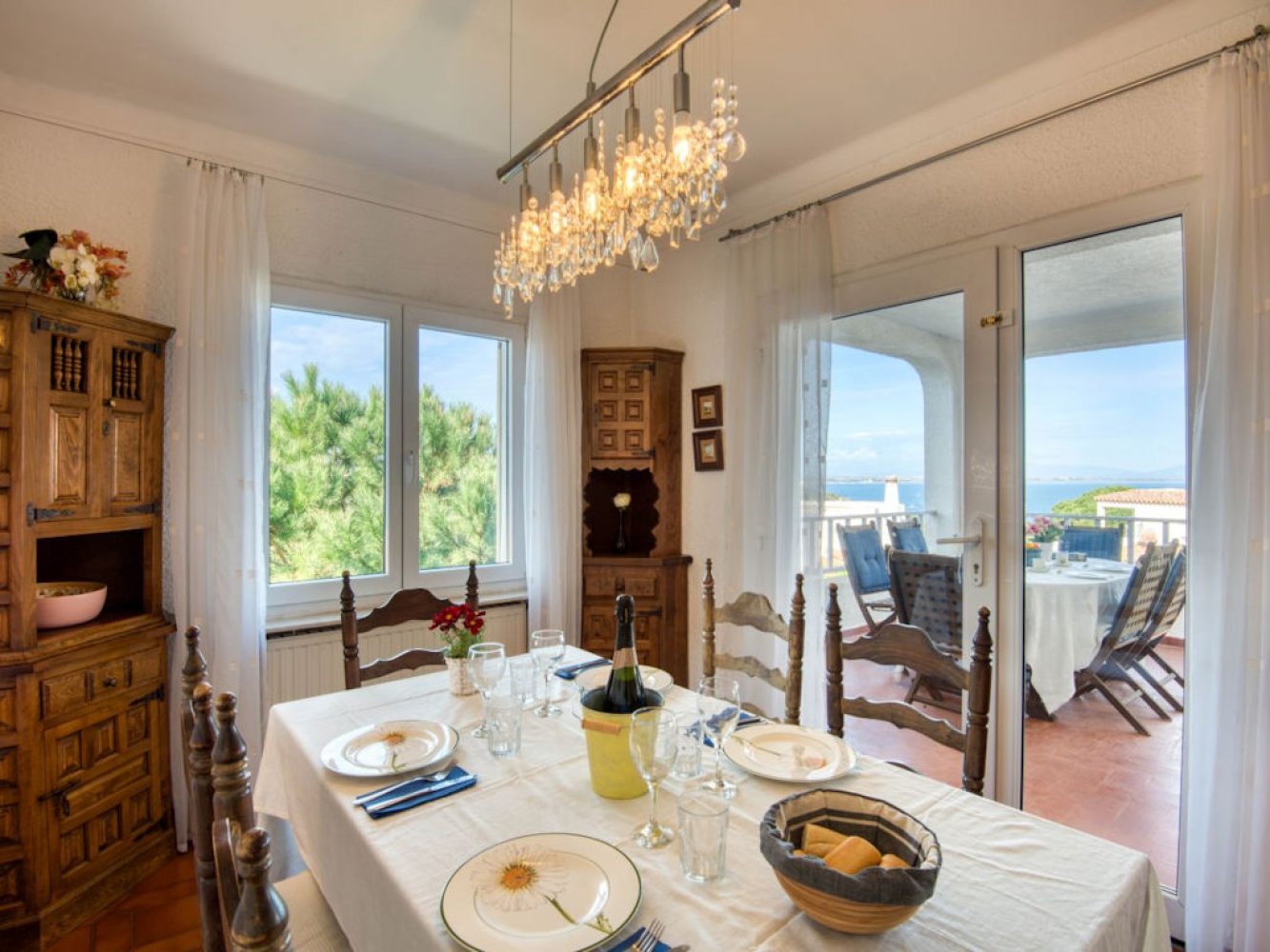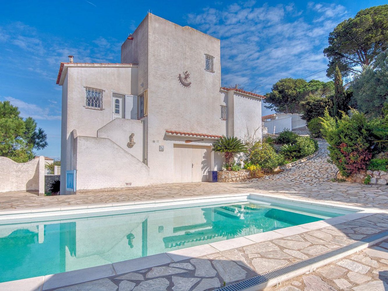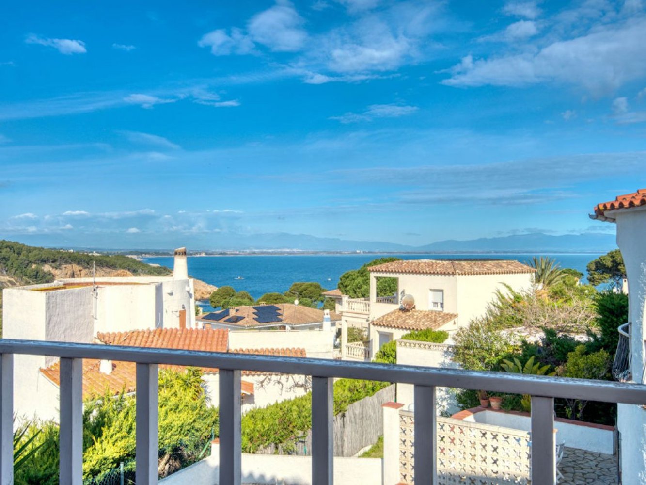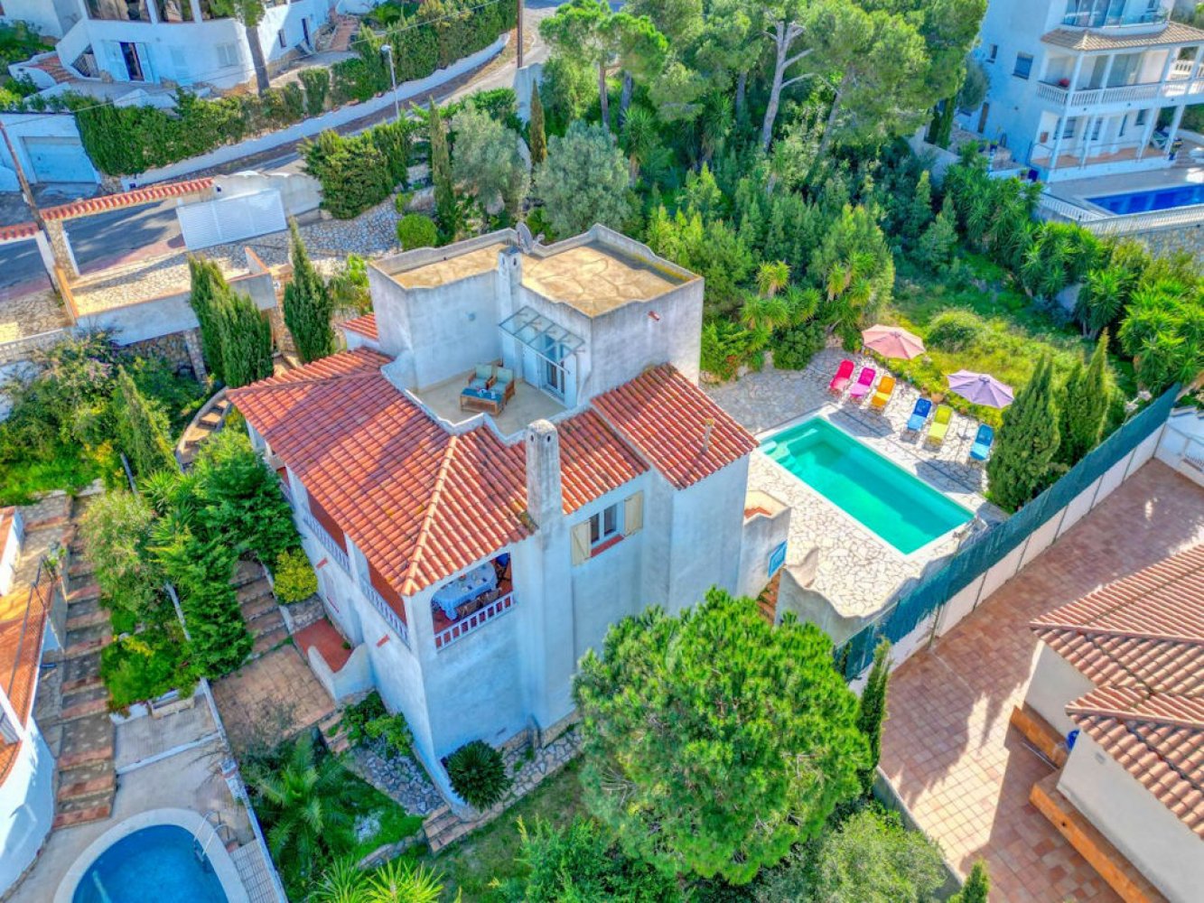 Mediterranes Ferienhaus mit privatem Pool in Spanien an der Costa Brava in L’Escala. Das großzügige Haus liegt in der Urbanisation „Montgó“, nur etwa 1000 Meter vom Strand entfernt, und bietet einen atemberaubenden Blick auf die Ferienregion und das Mittelmeer.