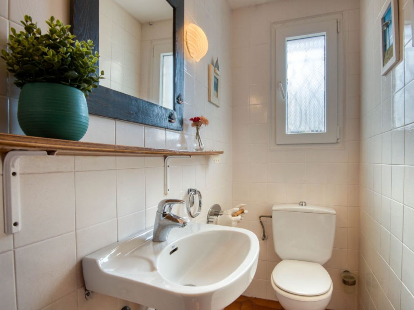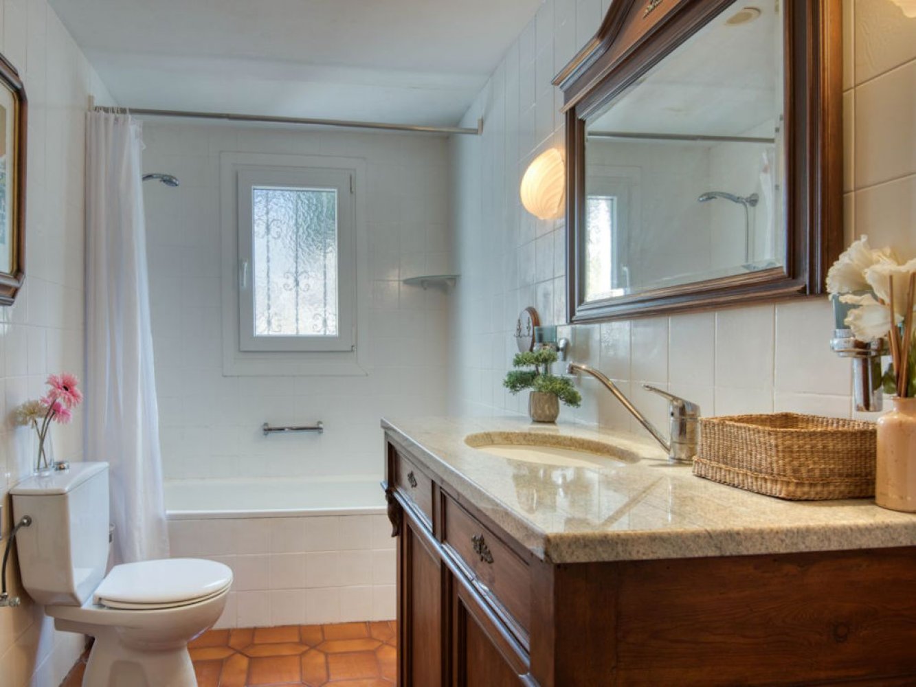 Das Haus erstreckt sich über zwei Etagen. Auf der Hauptebene erwartet Sie ein lichtdurchfluteter Wohn- und Essbereich mit Kamin und Fernseher, eine moderne, voll ausgestattete Küche mit Geschirrspüler sowie drei Doppelschlafzimmer. Ein modernes Badezimmer, ein separates Gäste-WC und der Zugang zu einer überdachten Terrasse mit Panoramablick runden diese Etage ab. Im Obergeschoss befindet sich eine Suite mit Doppelschlafzimmer, modernem Badezimmer und direktem Zugang zu einer traumhaften Terrasse mit spektakulärem Ausblick auf die Badebucht „Cala Illa Mateua“ und das Meer.