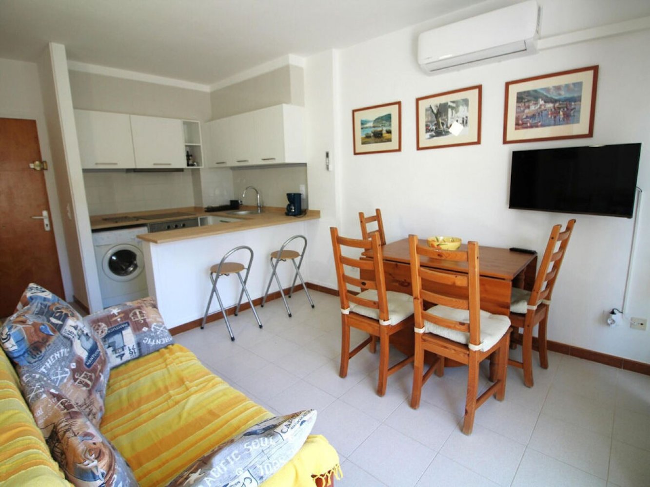 Die Wohnung befindet sich in einer gepflegten Gemeinschaftsanlage mit Zugang zu einer Liegewiese mit Außendusche und einem großen Swimmingpool. Das Appartement verfügt über ein helles Wohn- und Esszimmer mit Schlafcouch und Fernseher, eine komplett ausgestattete moderne Küche mit Waschmaschine, ein Doppelzimmer und ein modernes Badezimmer. Vom Wohn- und Essbereich haben Sie Zugang zu einem schönen Balkon mit Blick auf die mediterrane Umgebung. Ein Parkplatz steht zur Verfügung.