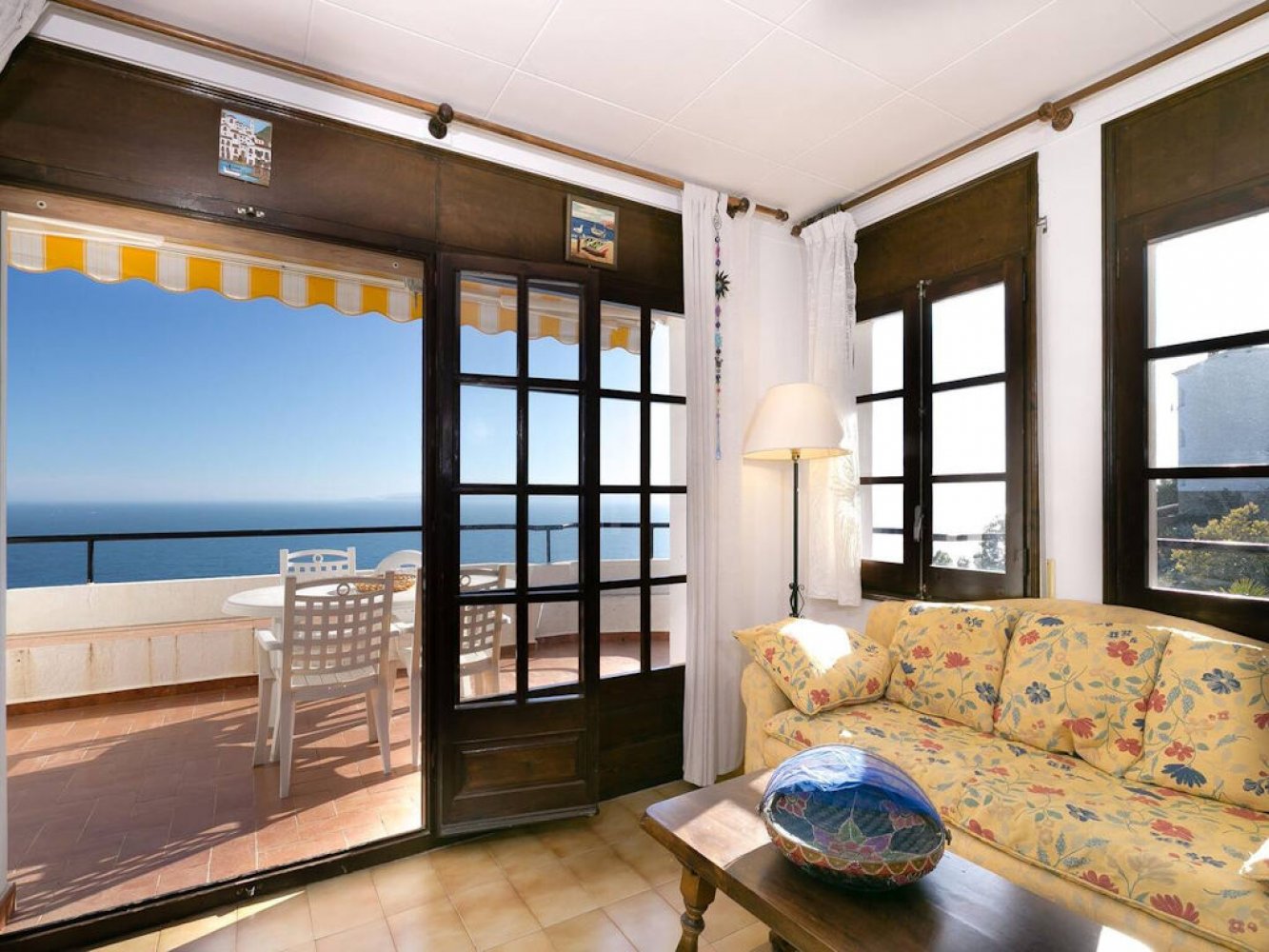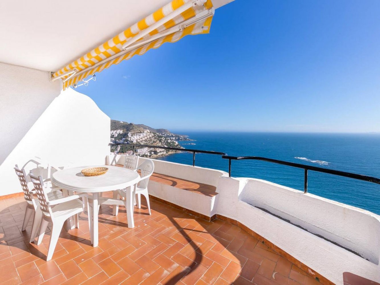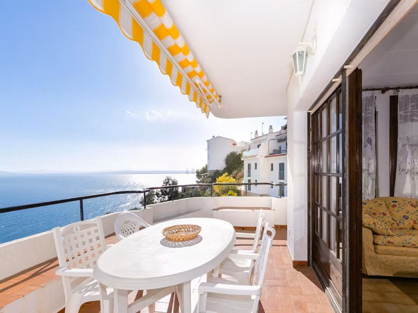 Ferienwohnung mit mediterranem Flair in Canyelles Petites bei Roses an der Costa Brava mit traumhaftem Panoramablick auf das Mittelmeer. Das Appartement liegt in einem Gebäude mit nur sechs Ferienwohnungen und gehört zu einer gepflegten Ferienanlage mit Gemeinschaftsswimmingpool.