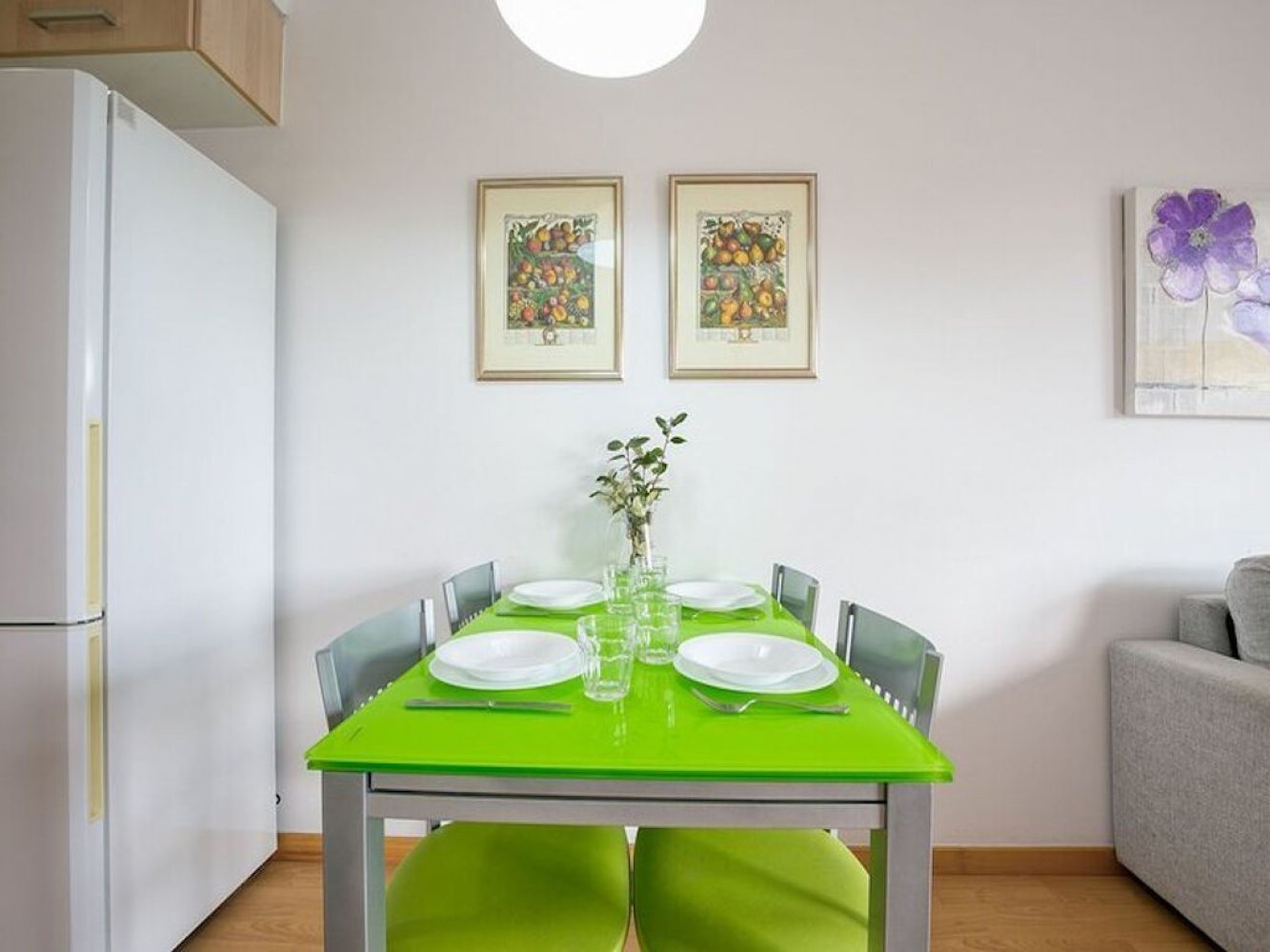 Die Ferienwohnung befindet sich in der 2. Etage und bietet ein helles Wohn-/Esszimmer, ausgestattet mit Schlafcouch und TV. Die voll ausgestattete Küche verfügt über eine Waschmaschine. Das Appartement umfasst ein Doppelschlafzimmer und ein modernes Badezimmer. Vom Wohn-/Esszimmer haben Sie Zugang zu einer schönen Terrasse mit herrlichem Blick auf die Ferienanlage. Ein privater Parkplatz in der Tiefgarage mit Abstellraum für Fahrräder und Kinderwagen ist inklusive.