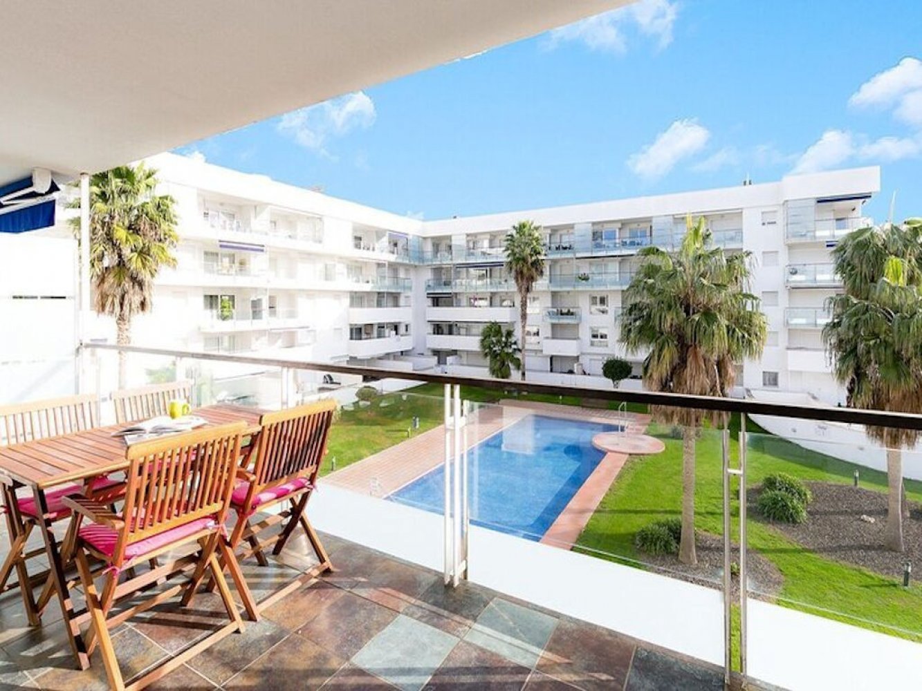 Moderne Ferienwohnung im Ortsteil Santa Margarita in Roses an der Costa Brava. Das Appartement gehört zu einer gepflegten mediterranen Ferienanlage mit Liegewiese und großem Gemeinschaftspool.