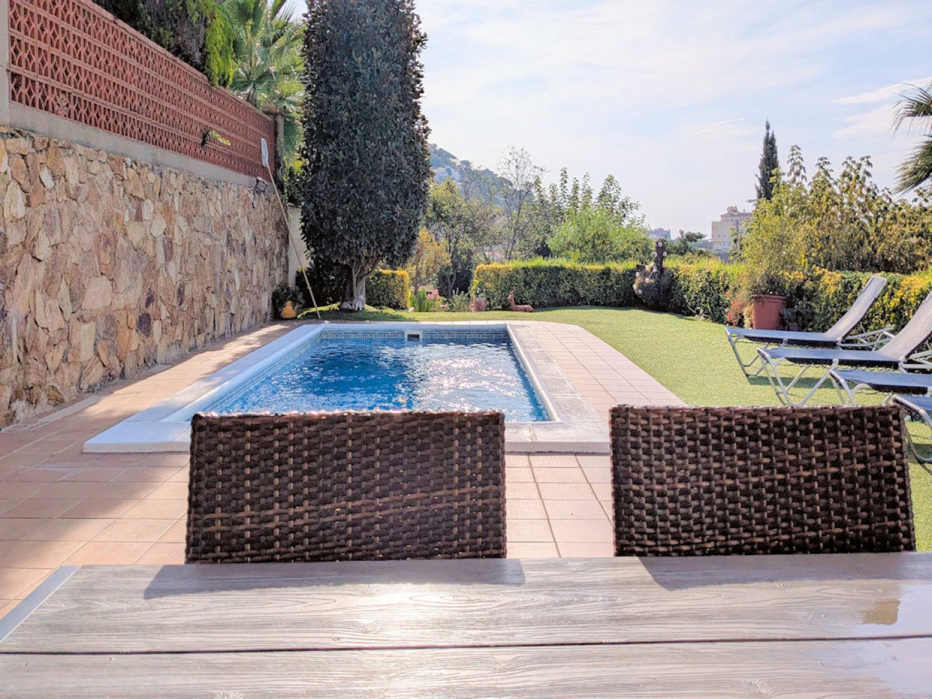 Casa de vacaciones con piscina privada en Blanes, en la Costa Brava. La cuidada finca mediterránea ofrece unas impresionantes vistas panorámicas al "Castillo de San Juan" de Blanes y al mar Mediterráneo.