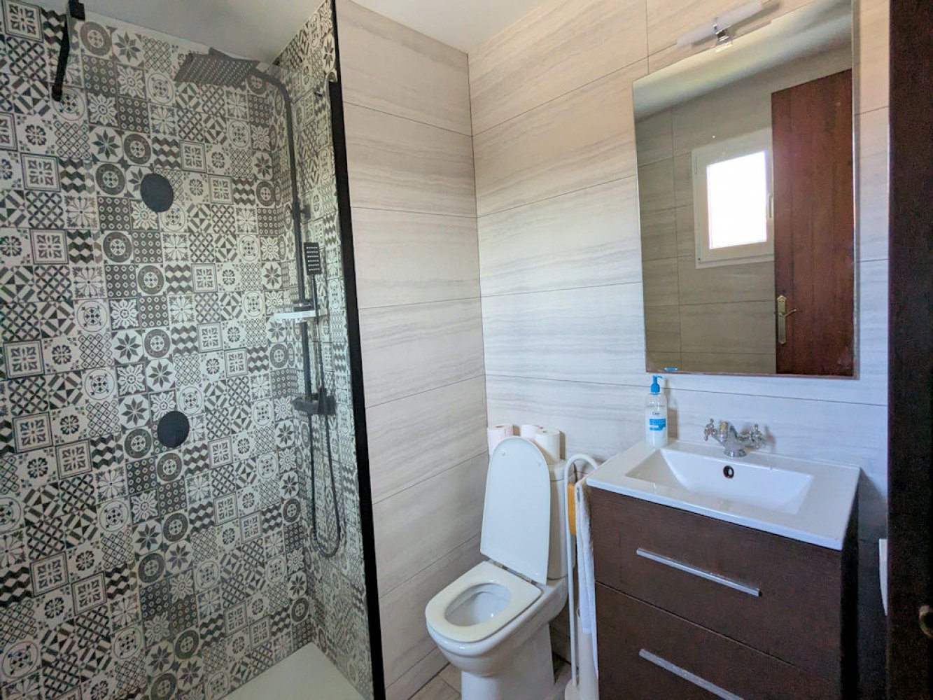 La villa de vacaciones renovada dispone de un luminoso y amplio salón-comedor con chimenea y televisor, una cocina totalmente equipada con lavavajillas, tres dormitorios dobles y dos baños modernos. Desde el salón-comedor se accede directamente a una bonita terraza cubierta y a la terraza de la piscina con magníficas vistas al mar y al Castillo de San Juan. En el exterior le espera un hermoso jardín mediterráneo con una zona de barbacoa de obra, una amplia terraza solárium y la piscina privada.