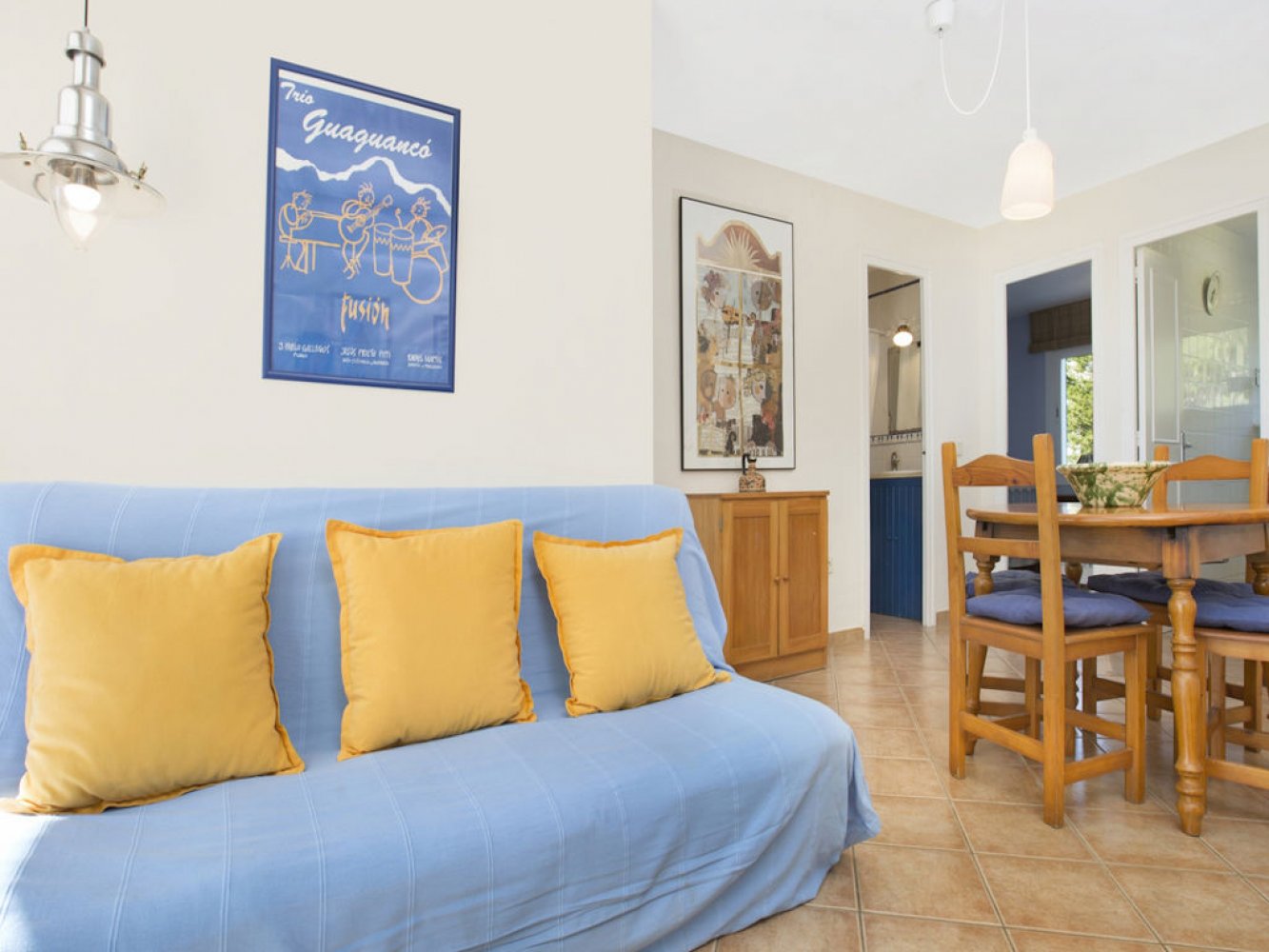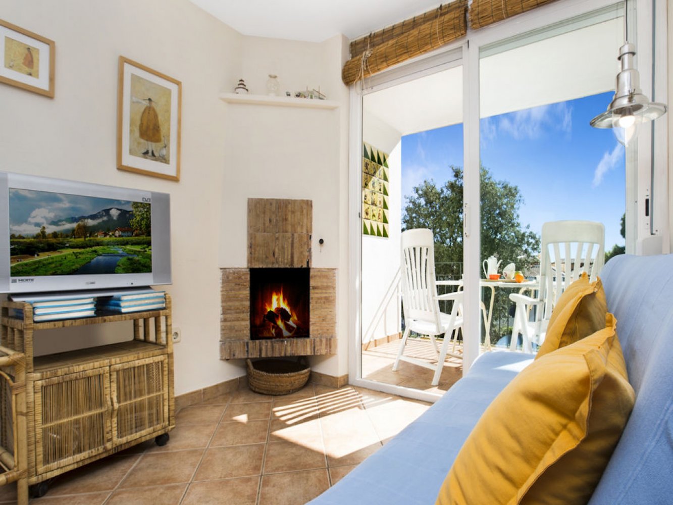 Situado en la primera planta, el apartamento dispone de un luminoso salón-comedor con chimenea, televisión y sofá cama, una moderna cocina totalmente equipada con lavadora, dos dormitorios dobles y un baño moderno. Desde el salón se accede a un bonito balcón con impresionantes vistas al mar y al paisaje mediterráneo que lo rodea. También dispone de plaza de aparcamiento privada.