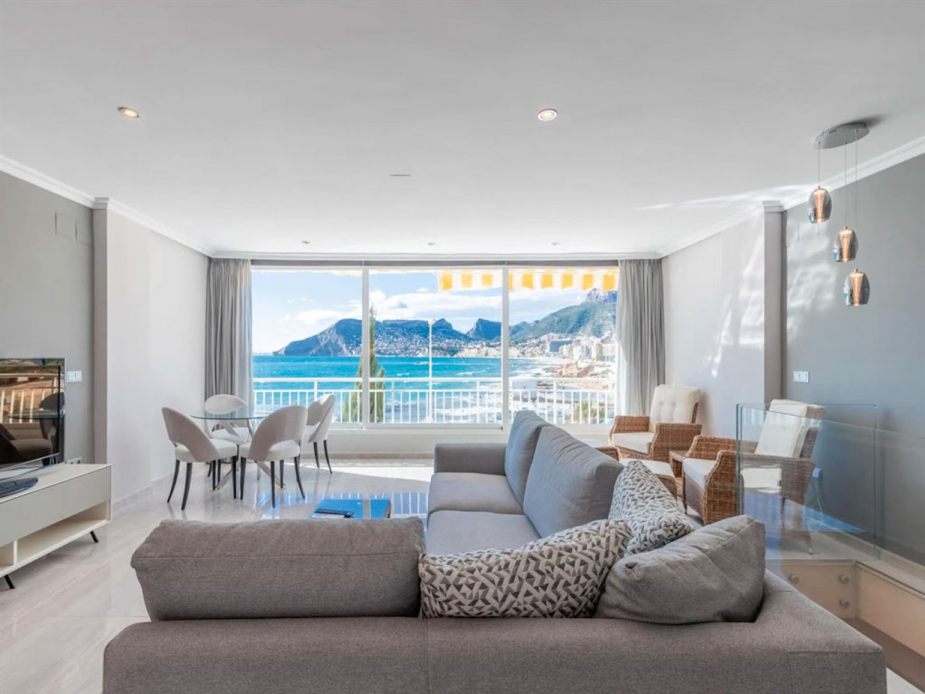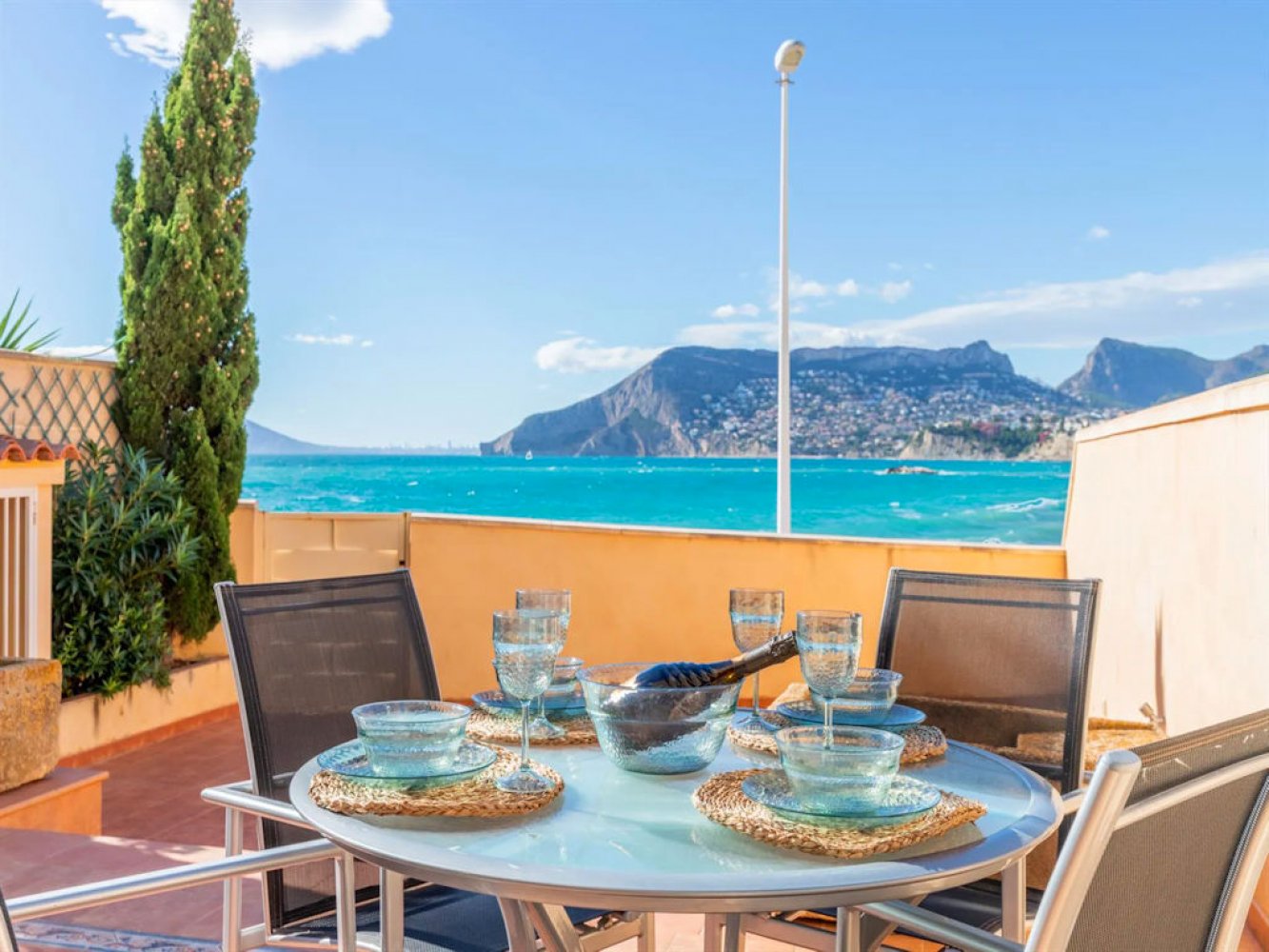 Appartement exclusif, à seulement 25 mètres de la plage, directement sur la promenade de Calpe, sur la Costa Blanca, avec une vue panoramique imprenable sur la mer.